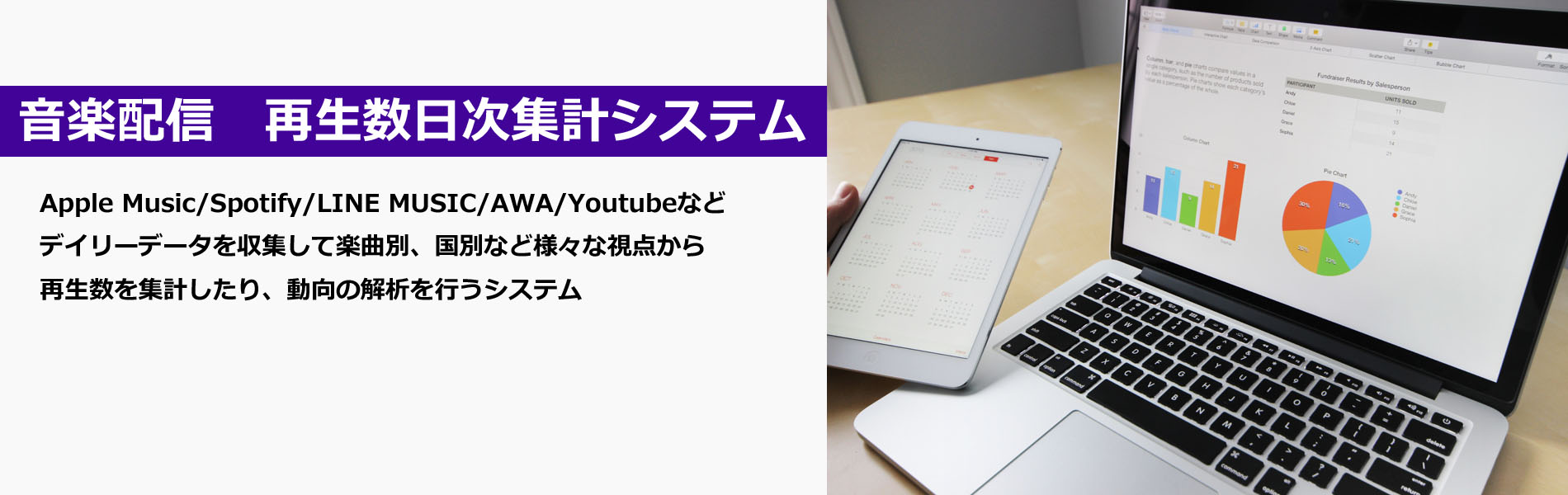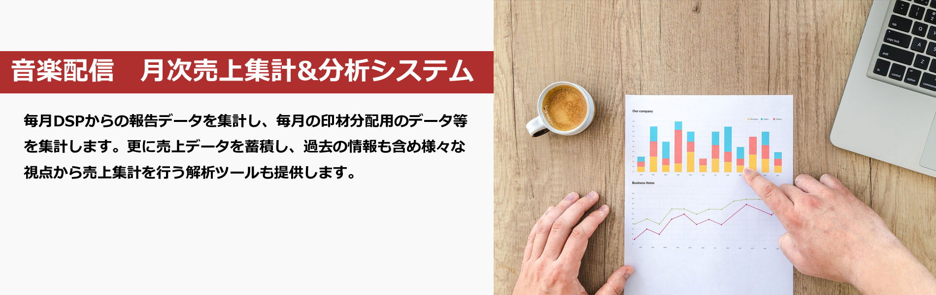 ・音楽配信の月次利用実績レポートの集計およびデータ解析