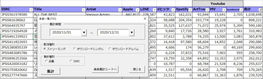 Youtube APIを使用し、Youtubeの日次再生数データを収集し、 ArtTrack/MusicVideo/SoundRecordingなどAssetType毎に集計を行うことができるようになりました。